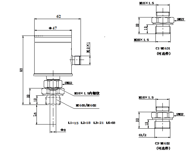 1.螺紋接口可根據(jù)用戶要求訂制,需在合同中注明。